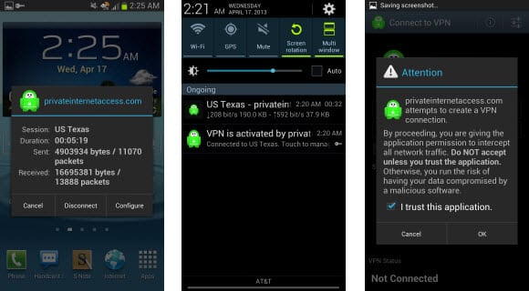 Android版使用海鸥VPN链接后,网络服务商看到你的IP地址是海鸥VPN服务器地址而不是你的真实IP地址,可以保护你的隐私。